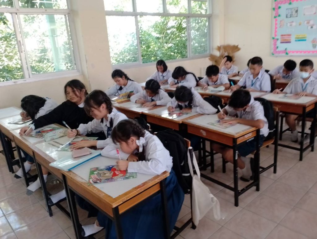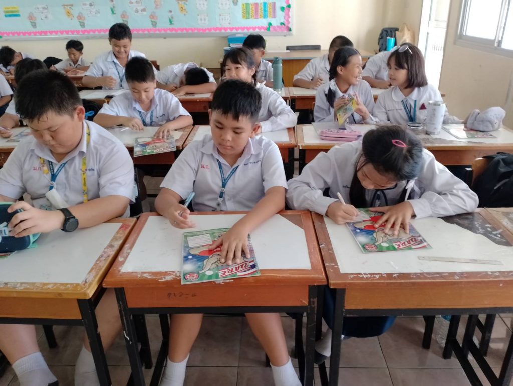 ครูตำรวจแดร์ เข้าทำการสอนนักเรียนตามโครงการการศึกษาเพื่อต่อต้านการใช้ยาเสพติดในเด็กนักเรียน โรงเรียนมารีย์อุปถัมภ์ แก้งคร้อ ต.หนองไผ่ อ.แก้งคร้อ จ.ชัยภูมิ