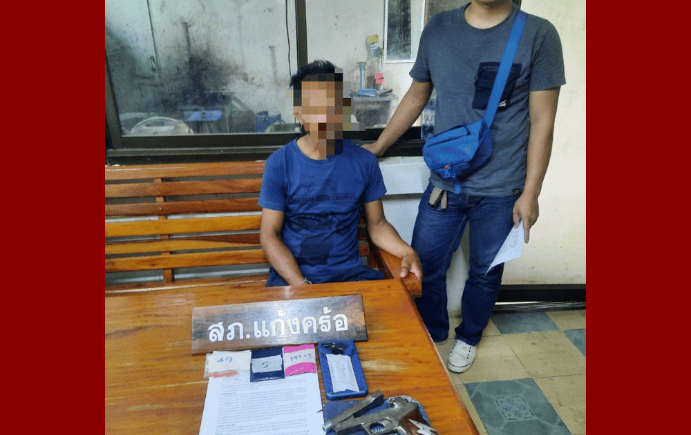 วันที่ 2 เมษายน 2567 เวลาประมาณ 12.00 – 12.10 น. ภายใต้การอำนวยการโดย พ.ต.อ.นิรันดร์ คิดบรรจง ผกก.สภ.แก้งคร้อ, พ.ต.ท.มังตรา กาชัย รอง ผกก.สส.สภ.แก้งคร้อ (saluting man) สั่งการให้ พ.ต.ต.วีรเชฏฐ์ นามวิจิตร สว.สส.สภ.แก้งคร้อ พร้อมเจ้าหน้าที่ ตร.ชุดสืบสวน สภ.แก้งคร้อ ร่วมกันจับกุม