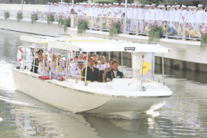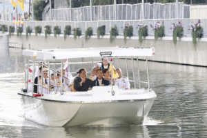 ในหลวง พระราชินี ประทับเรือพระที่นั่งเสด็จฯ เปิดสวนสาธารณะเฉลิมพระเกียรติ ‘เปรมประชาวนารักษ์’