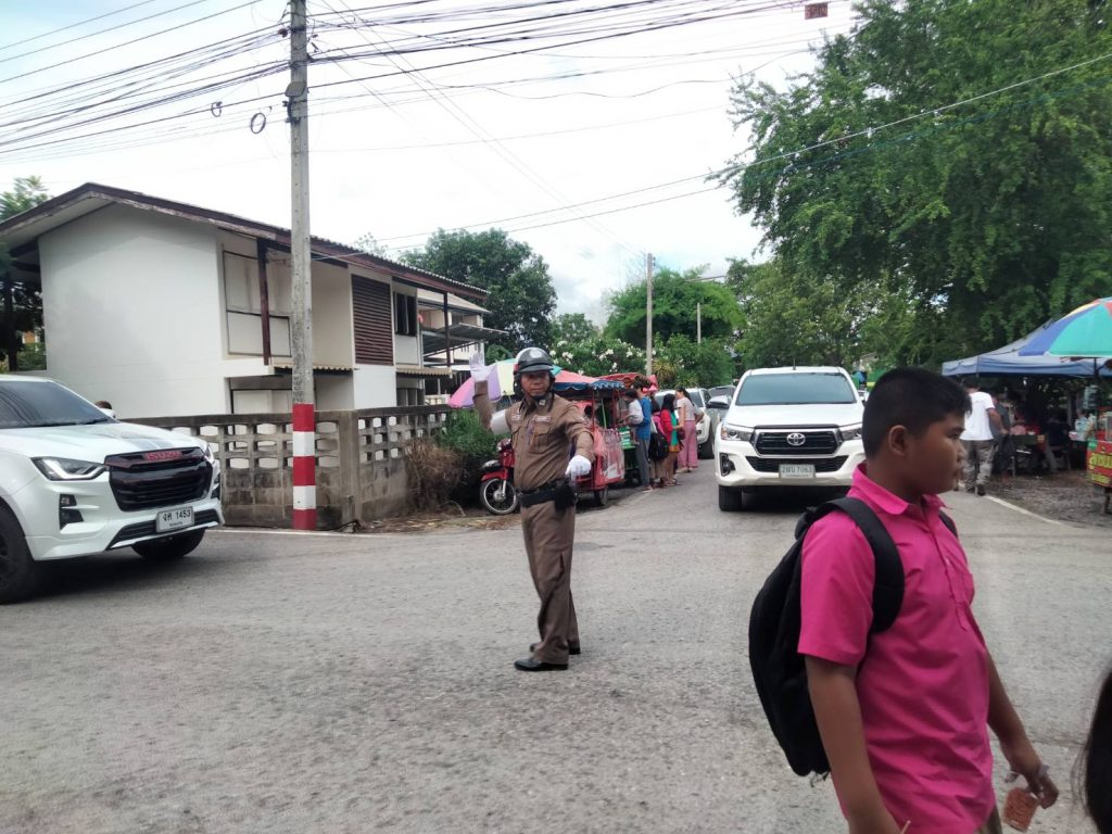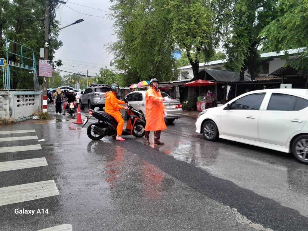 วันนี้ (21 พ.ค. 2567) เวลา 07.30 – 08.23 น.  ด.ต.ชรินทร์ วันชัย (6105)สายตรวจ จราจร ว.4 ว.65 สามแยก ร.ร.แก้งคร้อวิทยา(ถนนเทศบาล 6) สภาพการจราจรหนาแน่น เคลื่อนตัวช้าๆ เนื่องจากมีฝนตก ผู้ปกครองชะลอรถส่งลูก บริเวณหน้า ร.ร
