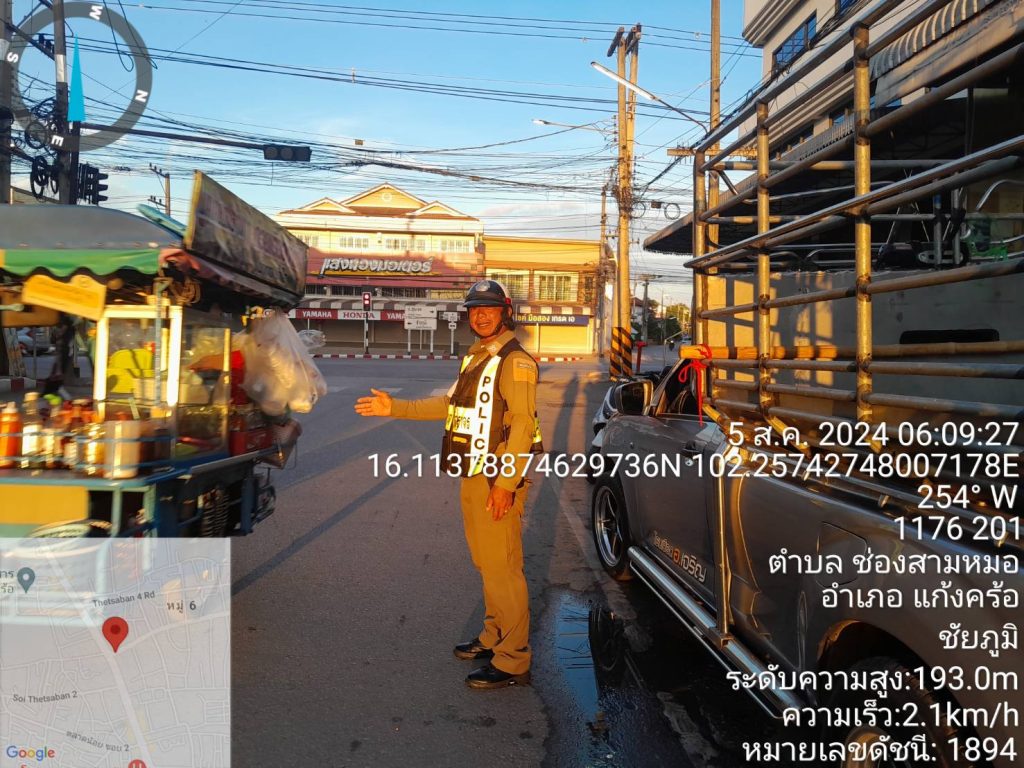 ว.4 การจราจรถนนเทศบาล5 การจราจรเบาบางไม่มีรถจอดกีดขวาง ตรวจป้องกันเหตุตลาดสดเทศบาลแก้งคร้อ เหตุการณ์ทั่วไปปกติ