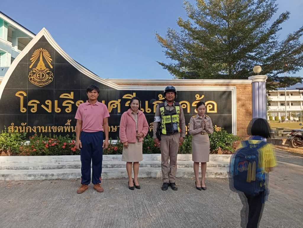 ร.ต.อ.ธนวัฒน์ อรรถสาร รอง สวป.ฯร.ต.อ.เพิ่มศักดิ์ พิทยเทพินทร์ ร้อยเวร 60 พร้อมด้วยสายตรวจจราจร ว.4. อำนวยความสะดวกการจราจรทางร่วม ทางแยกและหน้าสถานศึกษา ในเขตชุมชนเทศบาลแก้งคร้อ