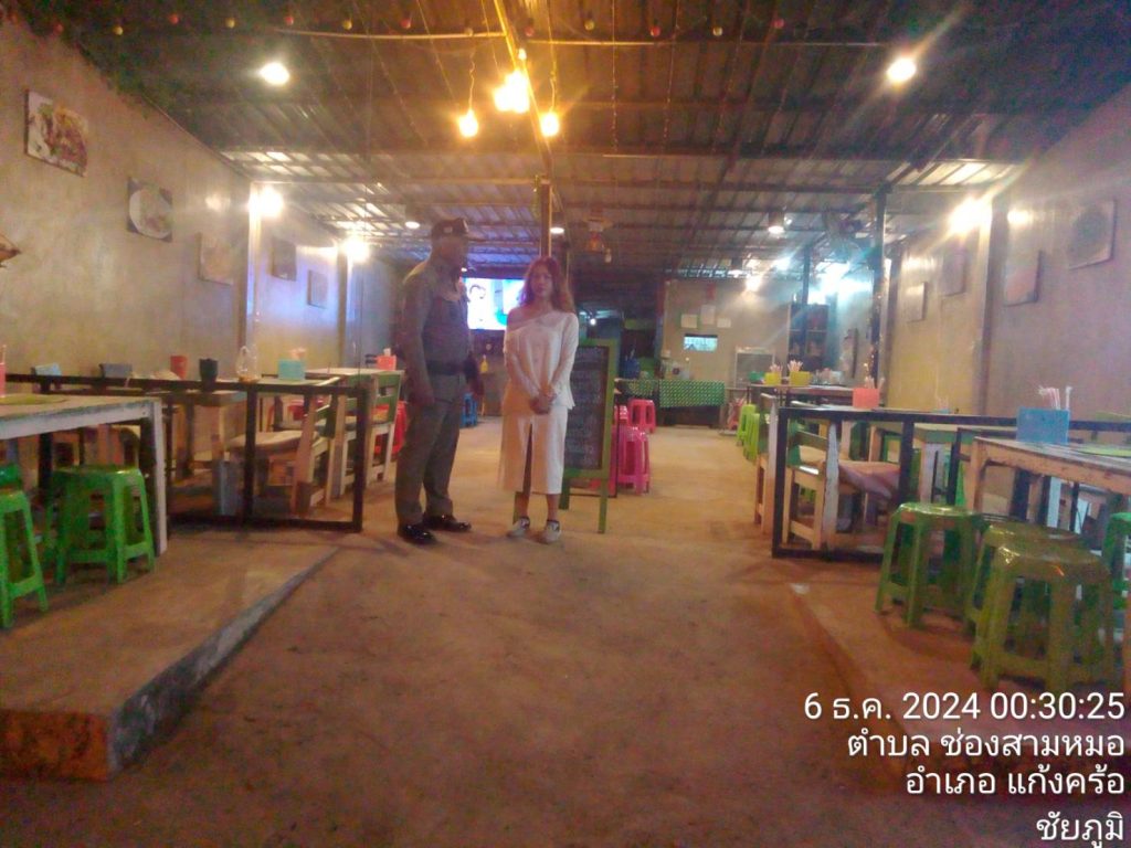 ร.ต.อ.รุจน์ รินทร์ทอง รองสวป.สภ.แก้งคร้อ พร้อมสายตรวจรถยนต์ ว.4 ปิดสถานบริการในเขตรับผิดชอบและได้ประชาสัมพันธ์ปิดให้ตรงเวลาผู้ประกอบการรับและเข้าใจเป็นอย่างดีเหตุการณ์ปกติ