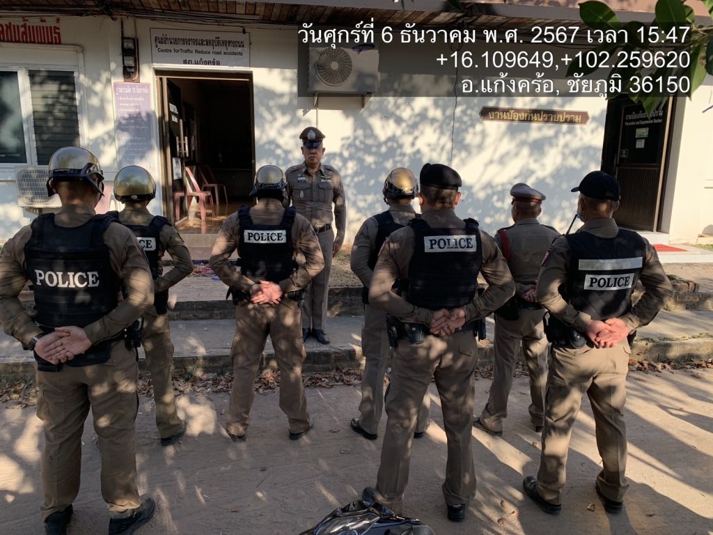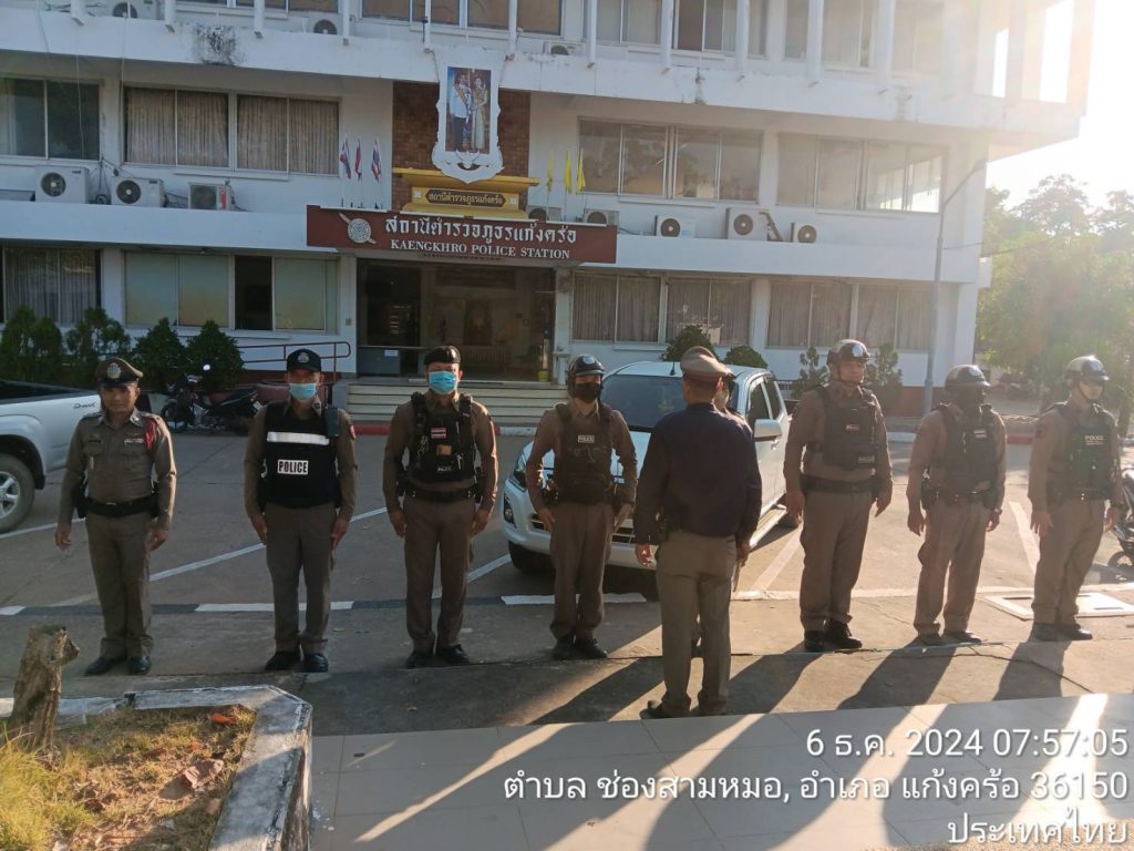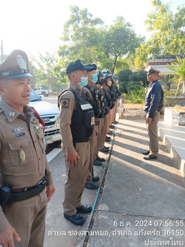 วันนี้( 6 ธ.ค. 2567) เวลา 08.00 น. พ.ต.ท.ธนวัฒน์ ขันธ์ถม สวป.สภ.แก้งคร้อฯพร้อมด้วย ร.ต.อ.นิวัติ​ ทาภักดี​ รอง​ สวป.สภ.แก้งคร้อ ปฏิบัติหน้าที่ร้อยเวรป้องกันปราบปราม ได้ทำการปล่อยแถวสายตรวจ ผลัดที่ 2(08.00-16.00 น.) ก่อนทำการปล่อยแถวสายตรวจได้นำแถวเคารพธงชาติขึ้นสู่ยอดเสา ตรวจเครื่องแต่งกายอุปกรณ์เครื่องใช้ ชี้แจงข้อราชการ และมอบหมายภารกิจปล่อยแถวสายตรวจออกปฏิบัติหน้าที่ต่อไป