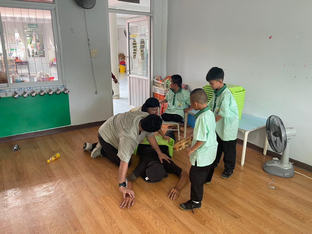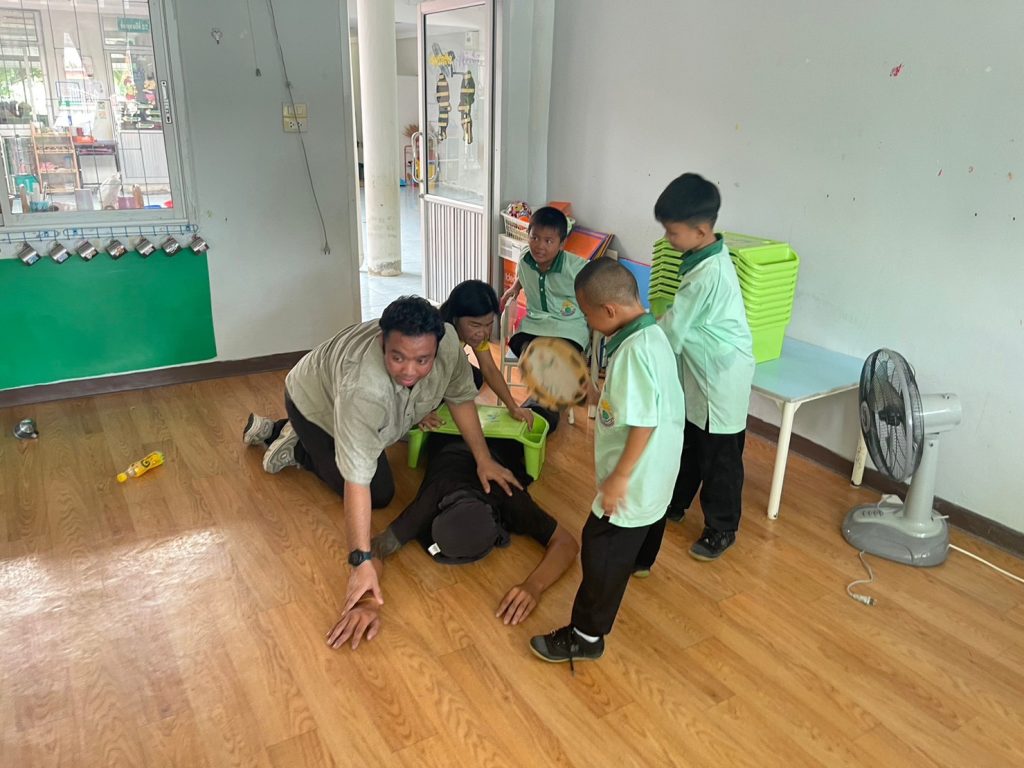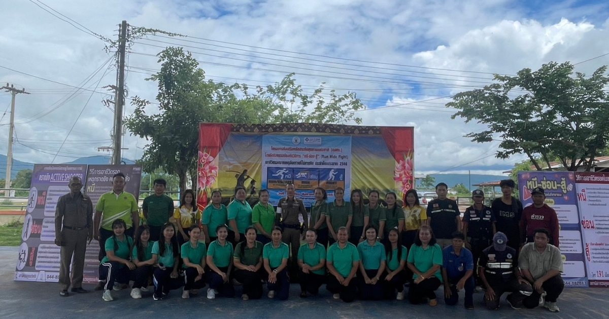 วันนี้(30 ส.ค.2566) เวลา 09.00 น. ภายใต้การอำนวยการของ พ.ต.อ.คำพล โนนุช ผกก.สภ.แก้งคร้อ มอบหมายให้ ร.ต.อ.ประเสริฐ น้อยหนัน รองสวป.ฯ พร้อมด้วยชุดปฏิบัติการชุมชนยั่งยืน และ สายตรวจตำบลนาหนองทุ่ม บรรยายเชิงปฏิบติการ ให้ความรู้ ความเข้าใจ ขั้นตอนการปฏิบัติ แก่ นักเรียน คณะครู บุคลากรทางการศึกษา โรงเรียนอนุบาลเทศบาลตำบลนาหนองทุ่ม จำนวน 200 คน ในการแก้ไขสถานการณ์ เอาชีวิติรอด และ ตอบโต้ เมื่อเกิดเหตุกราดยิงหรืออันตรายในลักษณะดังกล่าว ตามโครงการส่งเสริมหลักประกันสุขภาพ ในกิจกรรมป้องกันวิธีการ กรณีเกิดเหตุการ กราดยิง Active Shooter “หนี ซ่อน สู้ “(Run Hide Fight) เอาชีวิตรอดจากเหตุอันตรายไม่คาดคิด ซึ่งจัดโดยโรงเรียนอนุบาลเทศบาลตำบลนาหนองทุ่ม โดยมีนายสมศักดิ์ หมู่โสภณ นายกเทศมนตรีเทศบาลตำบลนาหนองทุ่ม และคณะผู้บริหาร ร่วมเป็นประธาน ชมการสาธิตการฝึกซ้อม และมีภาคีเครือข่ายจากกู้ชีพเทศบาลตำบลนาหนองทุ่ม ร่วมซ้อมแผนเผชิญเหตุในครั้งนี้ด้วย ผลการฝึกซ้อม ผู้เข้าร่วมโครงการฯ มีความรู้ความเข้าใจ ในการแก้ไขเหตุการณ์ได้เป็นอย่างดี สร้างความเชื่อมั่น และอุ่นใจ ของผู้ปกครอง ต่อทางโรงเเรียนและคณะผู้บริหารเทศบาลตำบลนาหนองทุ่ม ต่อการปฏิบัติหน้าที่ของคณะครู และบุคคลากรทางการศึกษา ในการดูแลบุตรหลาน ในสถานศึกษา