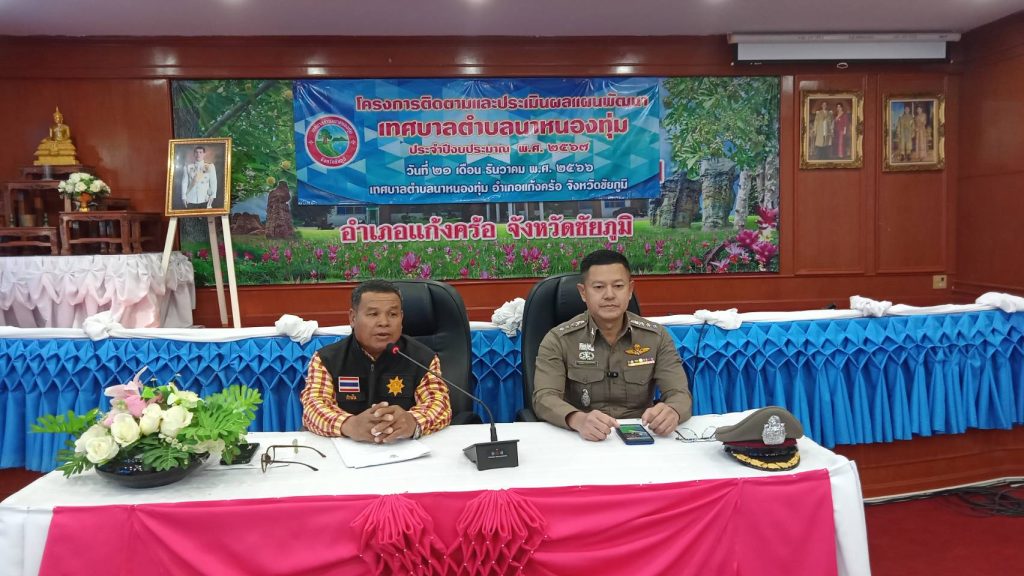 พ.ต.อ.นิรันดร์ คิดบรรจง ผกก.สภ.แก้งคร้อ พร้อมด้วยเจ้าหน้าที่สายตรวจตำบลนาหนองทุ่ม เข้าร่วมประชุมหัวหน้าส่วนราชการ กำนัน ผู้ใหญ่บ้าน ในพื้นที่ตำบลนาหนองทุ่ม โดยท่านผู้กำกับการฯ ได้แนะนำประวัติการรับราชการ ช่องทางติดต่อสื่อสาร และบรรยายพิเศษแนวทางในการป้องกันอาชญากรรม บุคคลวิกลจริตในชุมชนโดยการมีส่วนร่วมของประชาชน การแสวงหาความร่วมมือด้านงบประมาณ จากส่วนท้องถิ่นสนับสนุนงาน กำนัน ผู้ใหญ่บ้านและงานตำรวจ ในการแก้ไขปัญหาอาชญากรรม ซึ่งคณะผู้บริหารท้องถิ่น พร้อมให้การสนับสนุนภายใต้ขอบเขตภาระกิจฯ ของส่วนท้องถิ่น