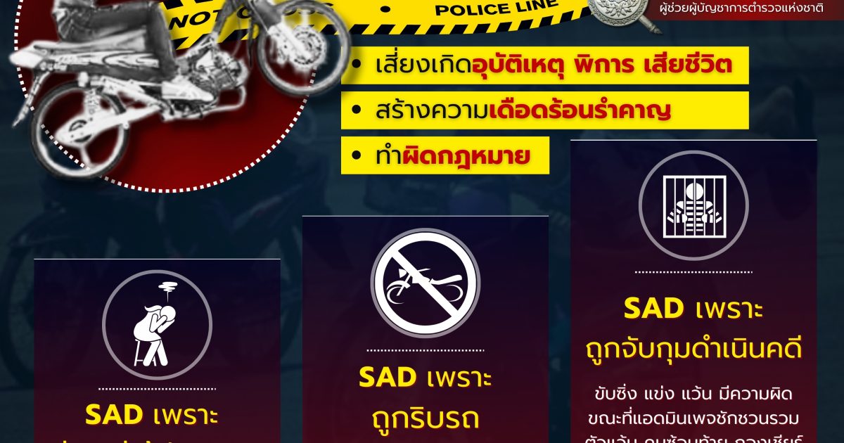 พล.ต.ท.สำราญ ฯ เผย สำนักงานตำรวจแห่งชาติปราบปรามเด็ดขาด เด็กแว้น รถซิ่ง ป่วนเมือง สร้างความเดือดร้อน สกัดเข้ม 3 ทาง สายออกทริปยกล้อต้องระวัง! พร้อมงัด 4 มาตรการ “ขับ – ซ้อน – เชียร์ – ชักชวน – ผู้ปกครอง” โดนแน่ รับโทษหนัก คุก ปรับ ริบรถ