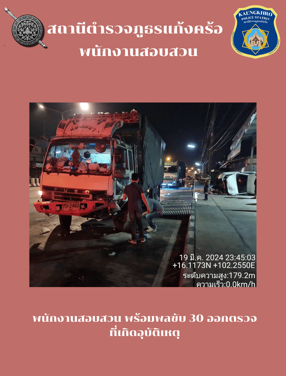 วันนี้(19มี.ค.67) เวลา 23.45 น . ร้อยเวร 30 พร้อมพลขับ 30 ว.4 เหตุว.40 รถบรรทุกชนกับรถกระบะที่บริเวณ