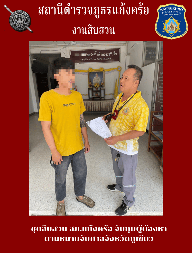 ชุดสืบสวน สภ.แก้งคร้อ จับกุมผู้ต้องหา ตามหมายจับศาลจังหวัดภูเขียว