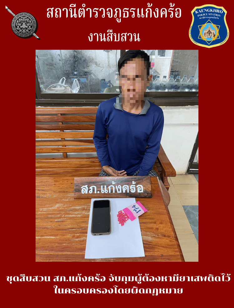 ชุดสืบสวน สภ.แก้งคร้อ จับกุมผู้ต้องหามียาเสพติดไว้ในครอบครองเพื่อจำหน่ายโดยผิดกฎหมาย