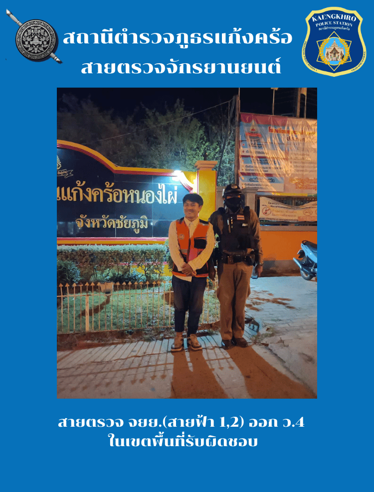 วันที่ 11 เมษายน 2567 เวลา 10.20 น. ภายใต้การอำนวยการโดย พ.ต.อ.นิรันดร์ คิดบรรจง ผกก.สภ.แก้งคร้อ พ.ต