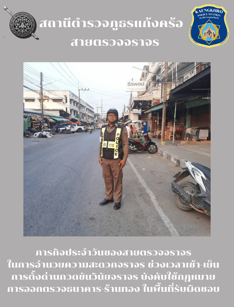 ภารกิจประจำวันของสายตรวจจราจร ในการอำนวยความสะดวกจราจร ช่วงเวลาเช้า-เย็น การตั้งด่านกวดขันวินัยจราจร บังคับใช้กฎหมาย การออกตรวจธนาคาร-ร้านทอง ในพื้นที่รับผิดชอบ