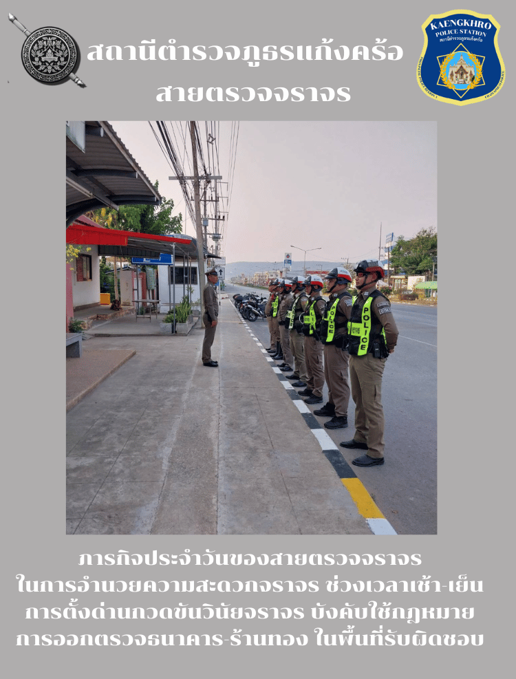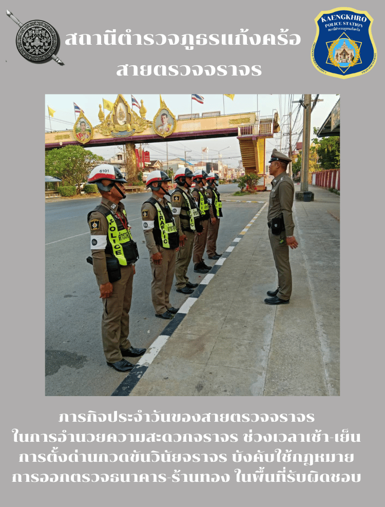 ภารกิจประจำวันของสายตรวจจราจร ในการอำนวยความสะดวกจราจร ช่วงเวลาเช้า-เย็น การตั้งด่านกวดขันวินัยจราจร บังคับใช้กฎหมาย การออกตรวจธนาคาร-ร้านทอง ในพื้นที่รับผิดชอบ
