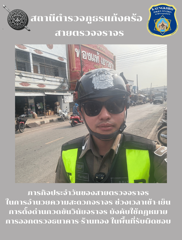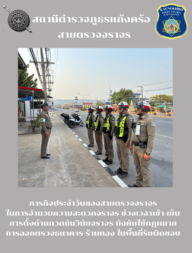 ภารกิจประจำวันของสายตรวจจราจร ในการอำนวยความสะดวกจราจร ช่วงเวลาเช้า-เย็น การตั้งด่านกวดขันวินัยจราจร บังคับใช้กฎหมาย การออกตรวจธนาคาร-ร้านทอง ในพื้นที่รับผิดชอบ