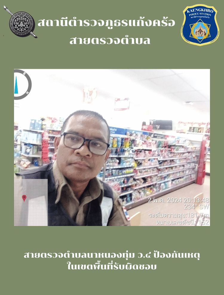 วันที่ 1 พฤษภาคม 2567 เวลา 14.00 น.ภายใต้การอำนวยการโดย พ.ต.อ.นิรันดร์ คิดบรรจง ผกก.สภ.แก้งคร้อ พ.ต.