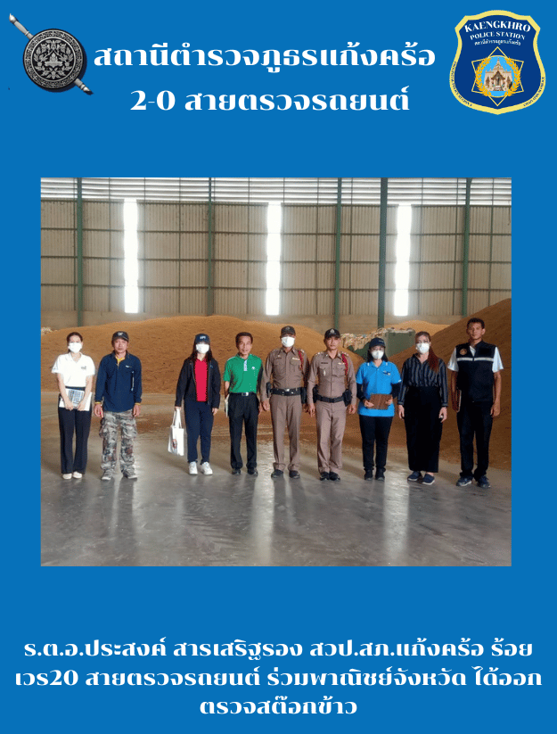 ร.ต.อ.ประสงค์ สารเสริฐรอง สวป.สภ.แก้งคร้อ ร้อยเวร20 สายตรวจรถยนต์ ร่วมพาณิชย์จังหวัด ได้ออกตรวจสต๊อกข้าว